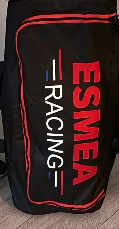 Grote reistas met wielen. Telescopisch handvat. 2 handgrepen. Zijzak en centrale U-vormige zak.